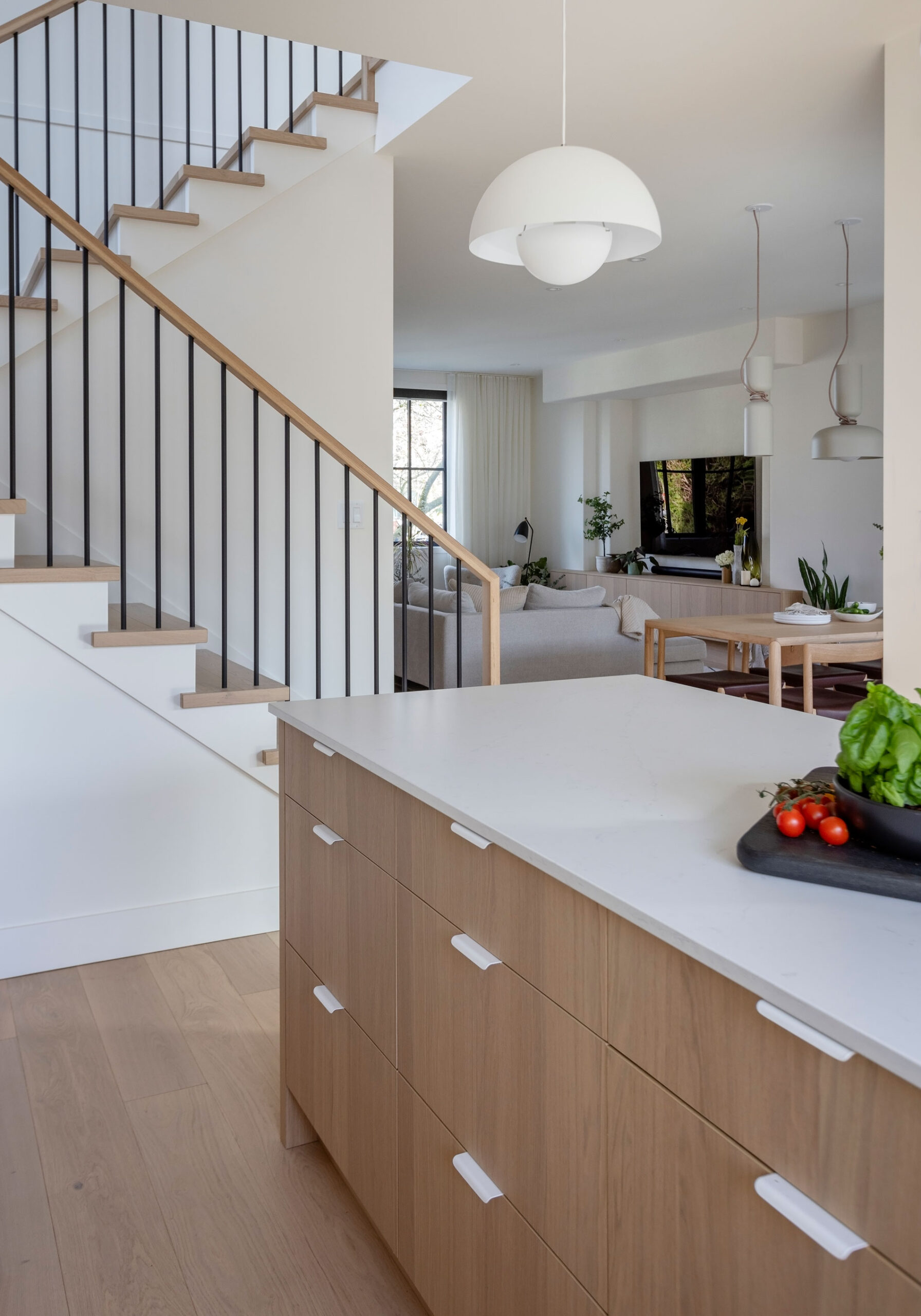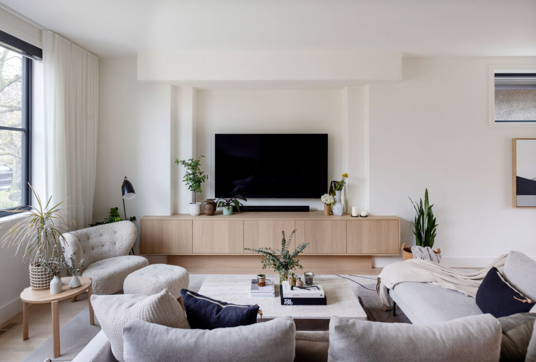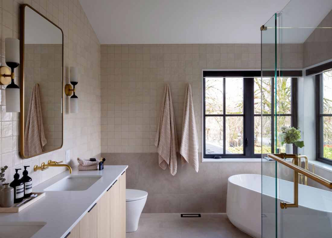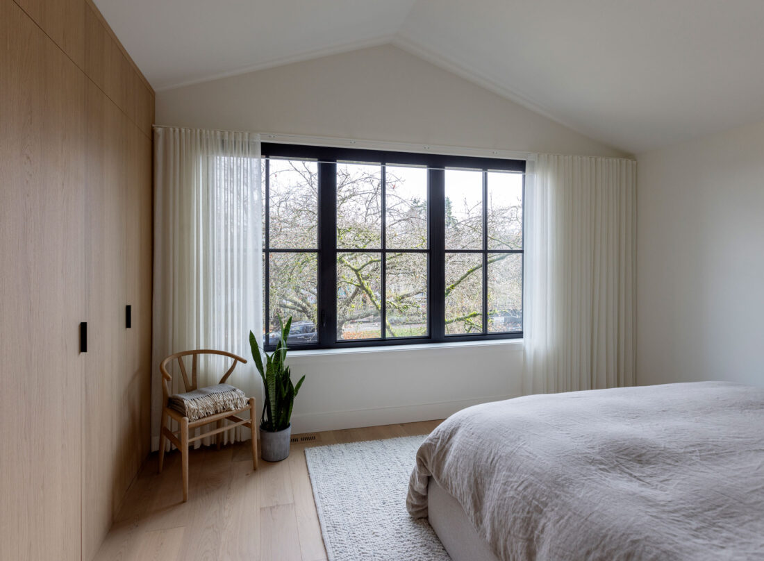 The home’s interiors feature natural oak, quartz, and matte finishes for a cohesive, calming palette. Triple-glazed windows, an airtight envelope, and all-electric systems boost comfort and efficiency. An HRV system, Energy Star appliances, and low-VOC finishes promote air quality, energy savings, and overall wellness, making The Ridge House a finely crafted, sustainable home built to last.