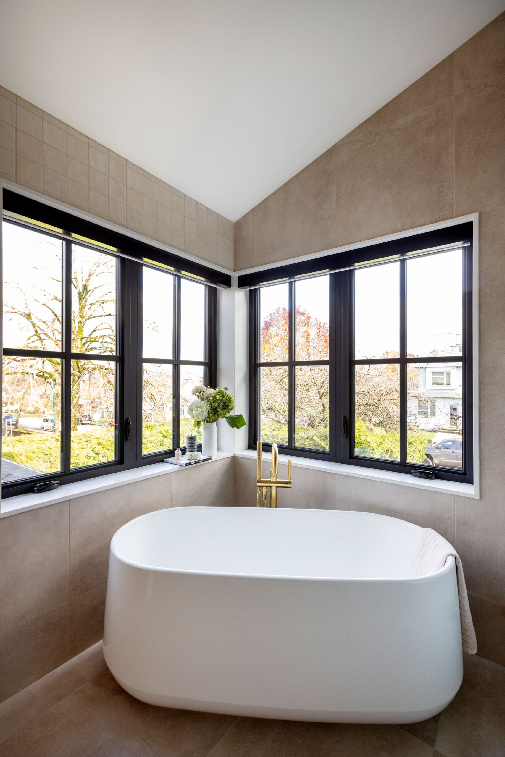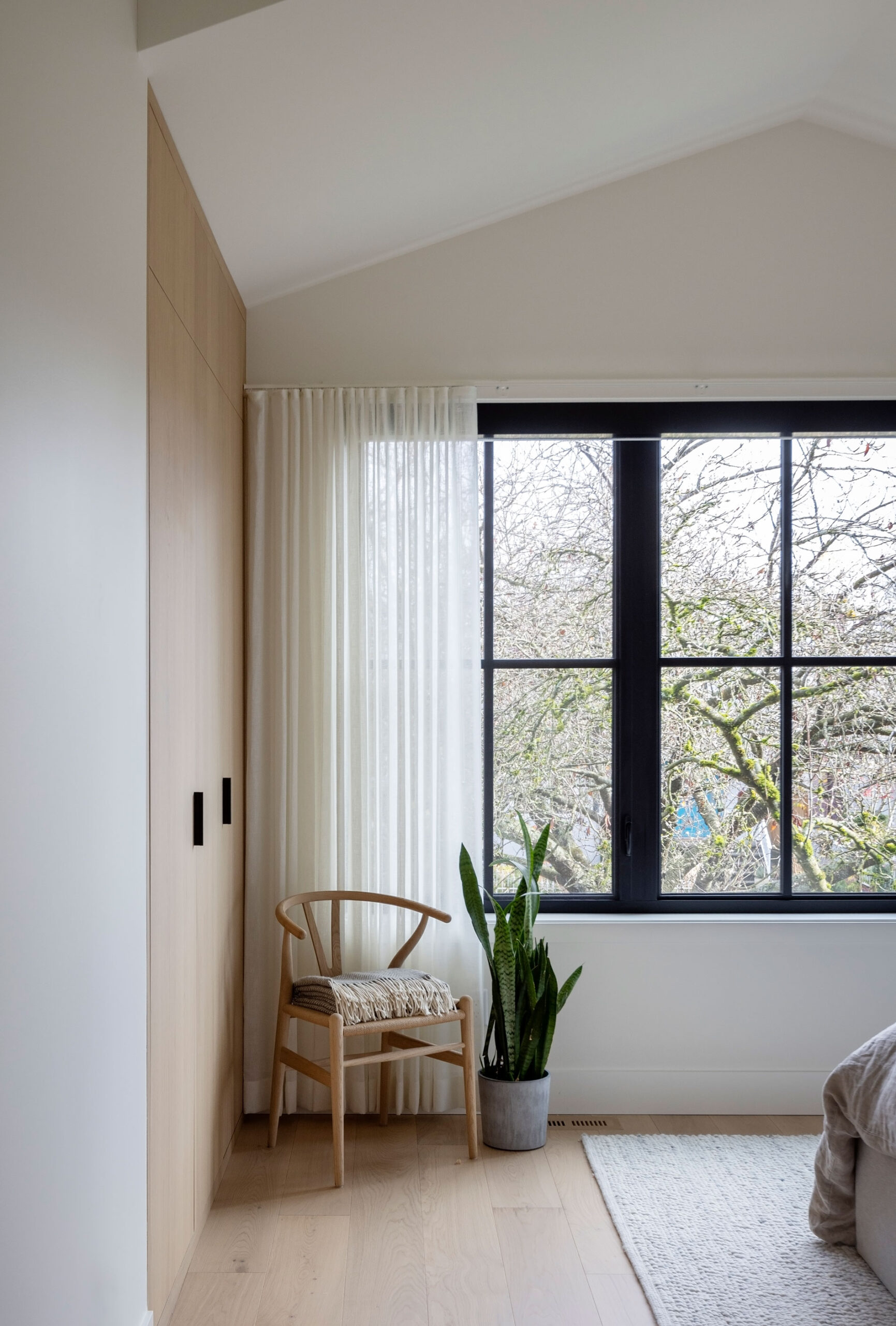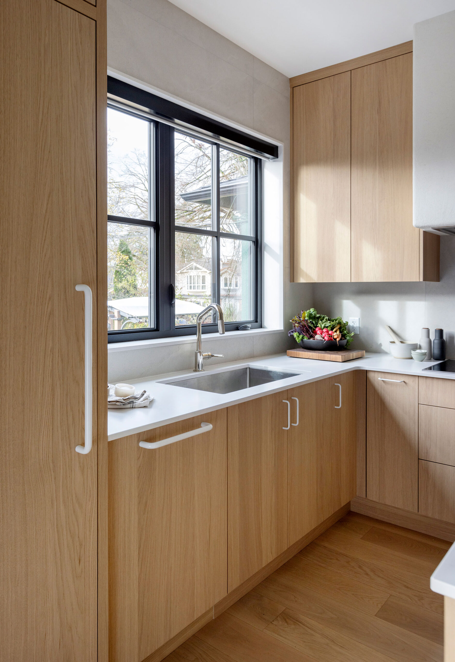 The home’s interiors feature natural oak, quartz, and matte finishes for a cohesive, calming palette. Triple-glazed windows, an airtight envelope, and all-electric systems boost comfort and efficiency. An HRV system, Energy Star appliances, and low-VOC finishes promote air quality, energy savings, and overall wellness, making The Ridge House a finely crafted, sustainable home built to last.